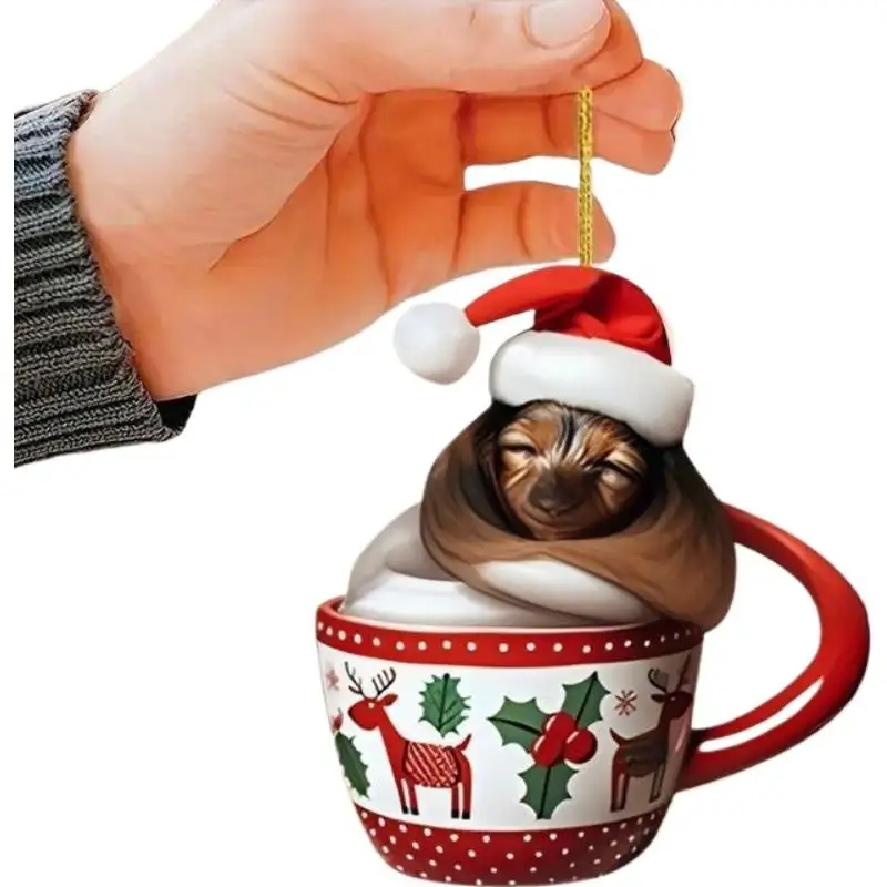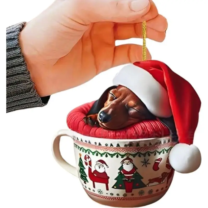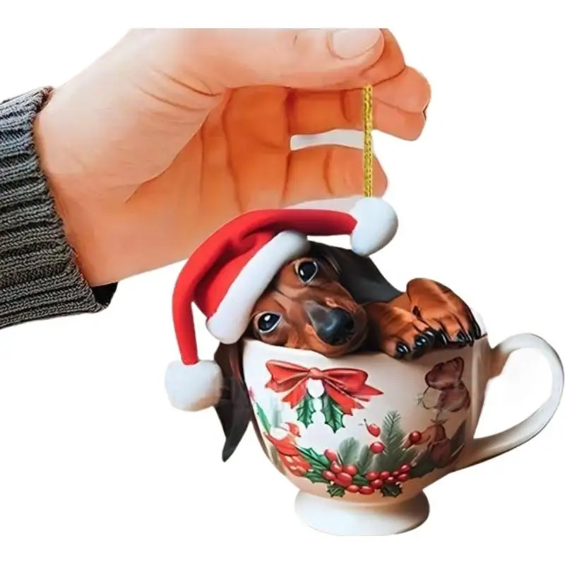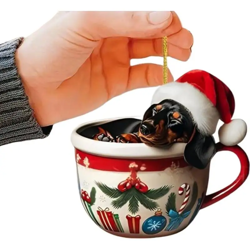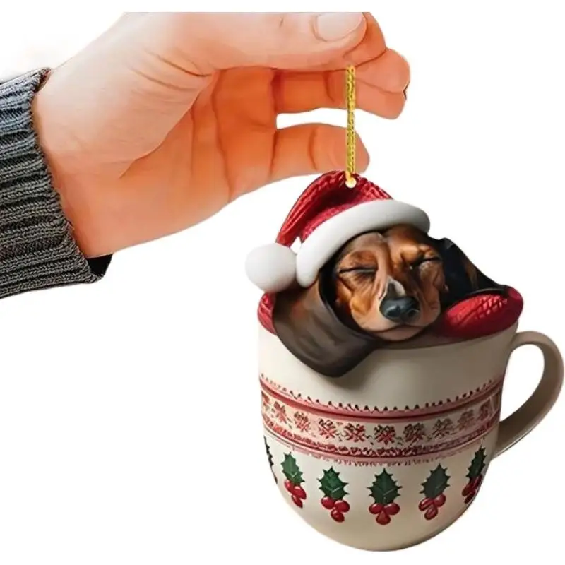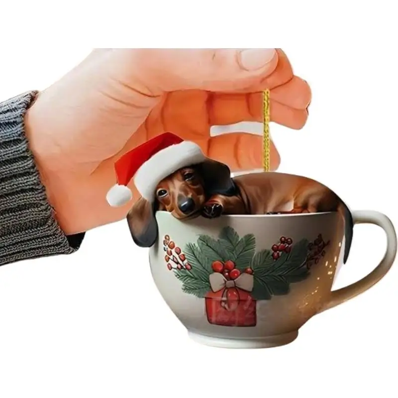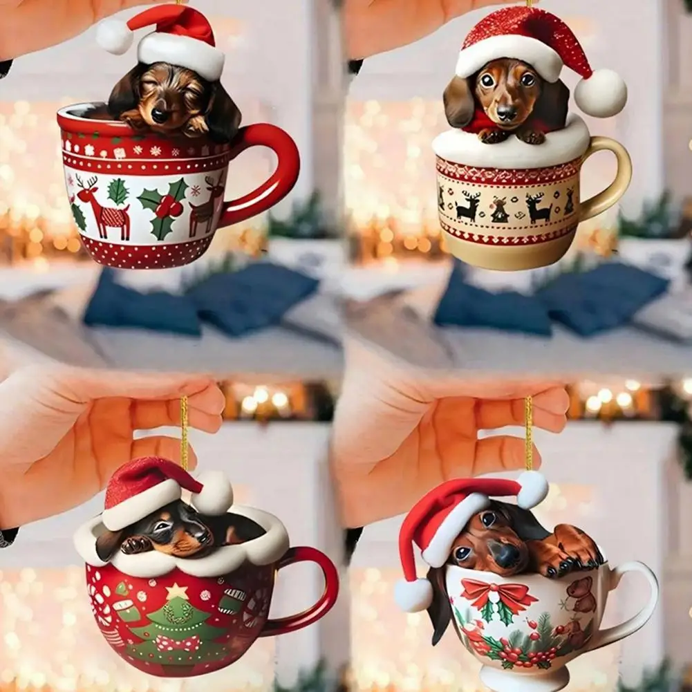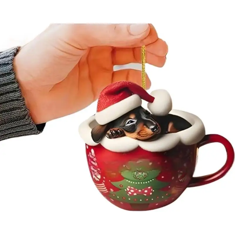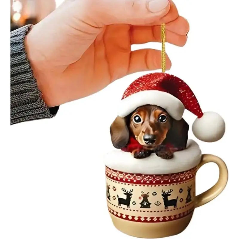 1. Cute Christmas mug dog pendant. The adorable design adds a warm festive touch, perfect for gifts or personal use.