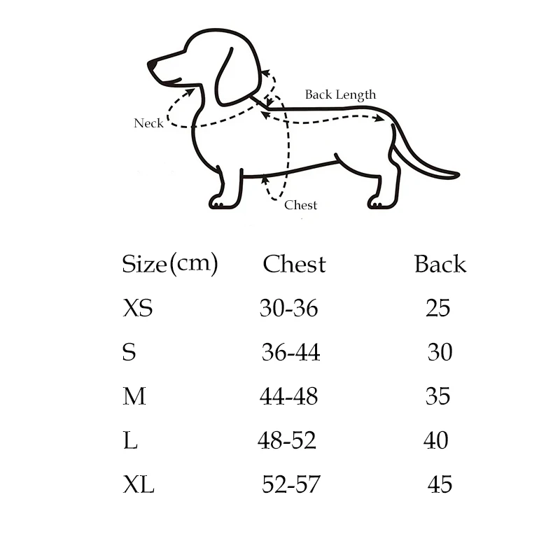 ❤Please measure the dog's front chest (chest 1) and back abdomen (chest 2)